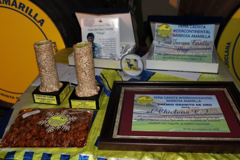 - EL GRANITO DE ORO, por la trayectoria deportiva mostrada en las últimas temporadas llevando el nombre de nuestra ciudad de Chiclana con orgullo al fútbol nacional en Copa Del Rey durante 2 temporadas seguidas, y culminadas con el ascenso de categoría, además de su cariño mostrado a la hora de dar el merecido reconocimiento a nuestros homenajeados año tras año en nuestras galas, lo otorgamos al CHICLANA C.F