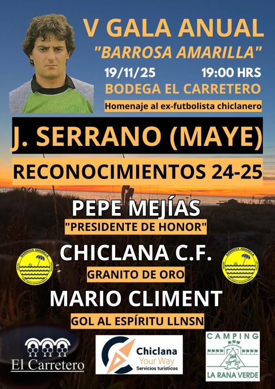 - NUESTRO HOMENAJE Y RECONOCIMIENTO ANUAL a la figura de exfutbolistas chiclaneros, que han defendido los colores de nuestro Cádiz Cf en algún momento de la historia, en esta ocasión recaerá en:D. JOSÉ SERRANO (MAYÉ)