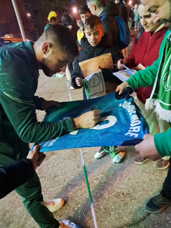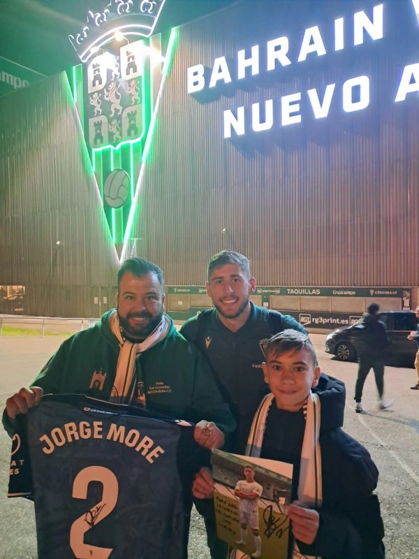 La sorpresa vino cuando al acabar el partido el propio Jorge al salir del estadio les regaló una camiseta que les firmo allí a la peña.